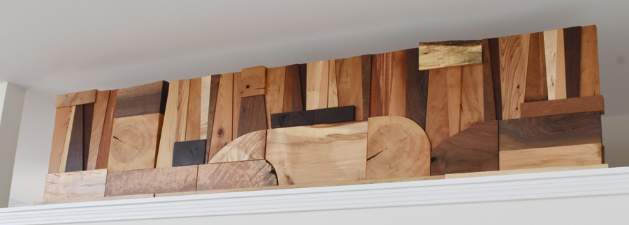 Recent project: Just finished installing a free-standing sculptural collage piece built for a house in Harrodsburg that measures 7½ feet long and features more than 10 different native wood species.