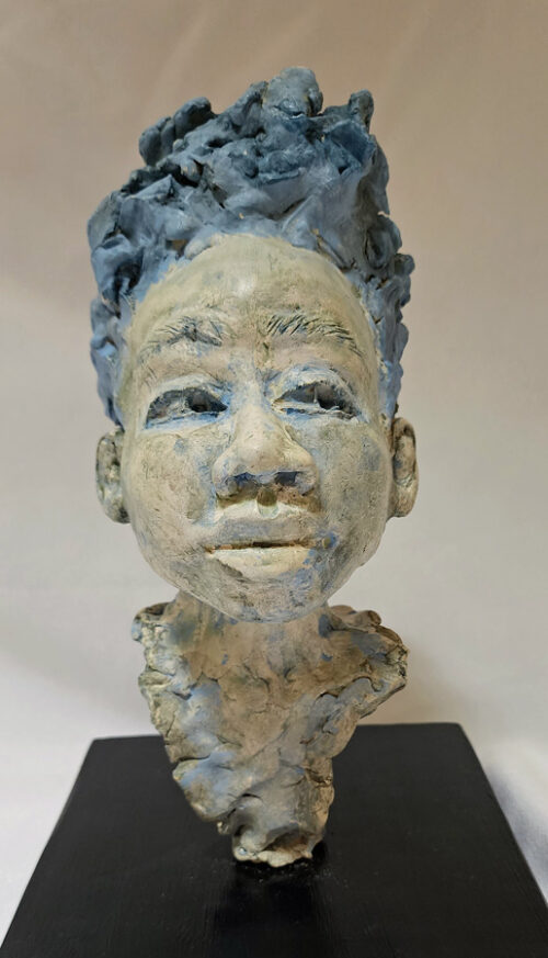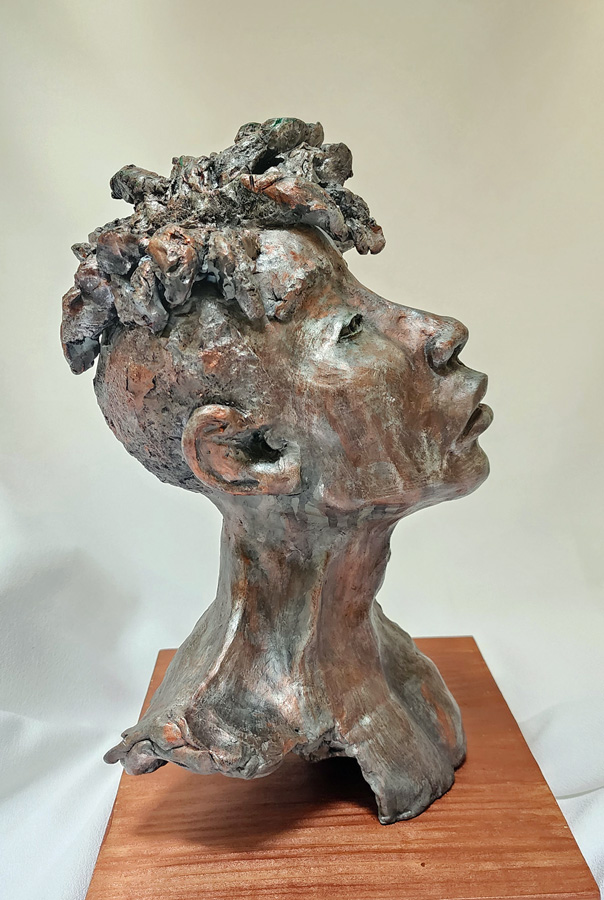 Some of her ceramic sculptures touch on people with mental health issues and the ones who love them.