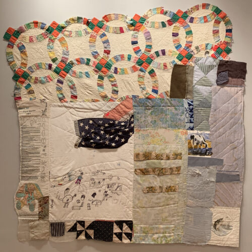 The materials: Clothes and old textiles donated to her or mailed to her from all over the country. In one quilt, she incorporated fabric from a fancy old house robe that came from “The Big House,” the home of an old wealthy Water Valley family.