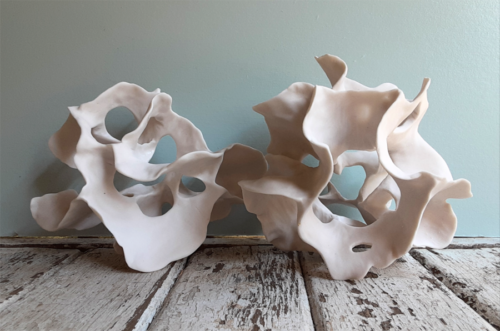The goods & materials: Frost porcelain clay. Vases ($48 to $300) and bowls ($60 to $350) are made on the pottery wheel. Sculptural pieces ($150 and up) are hand built.