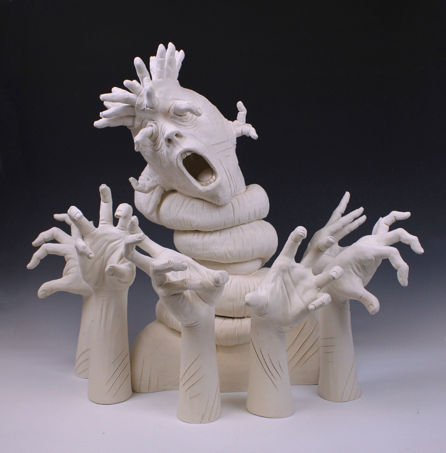 Jackson Shaner incorporates elements of body horror and the uncanny in many of his emotional clay works.