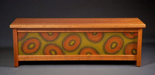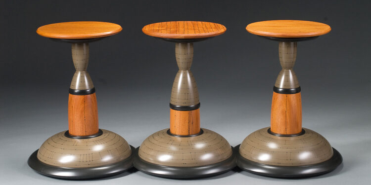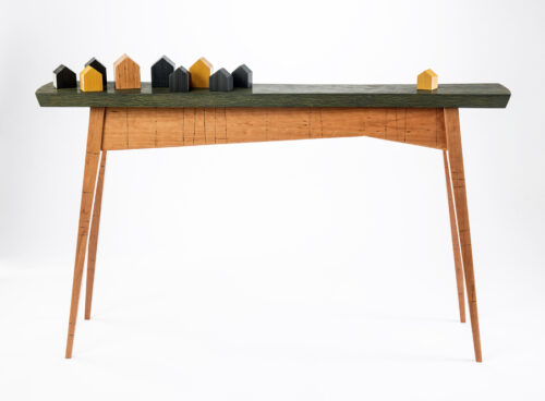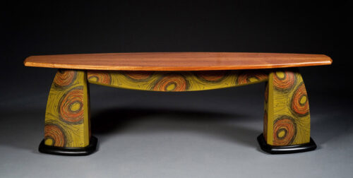 The goods & materials: One–of-a-kind and limited-edition furniture and furnishings, primarily, using hardwood, paint and graphite. Also dabbles in wooden wearable jewelry. They all display a strong focus on form, color and pattern.