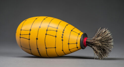 Tennessee woodturner Kimberly Winkle hand draws dots, lines and other patterns on her quirky-cool painted furniture and wood objects.